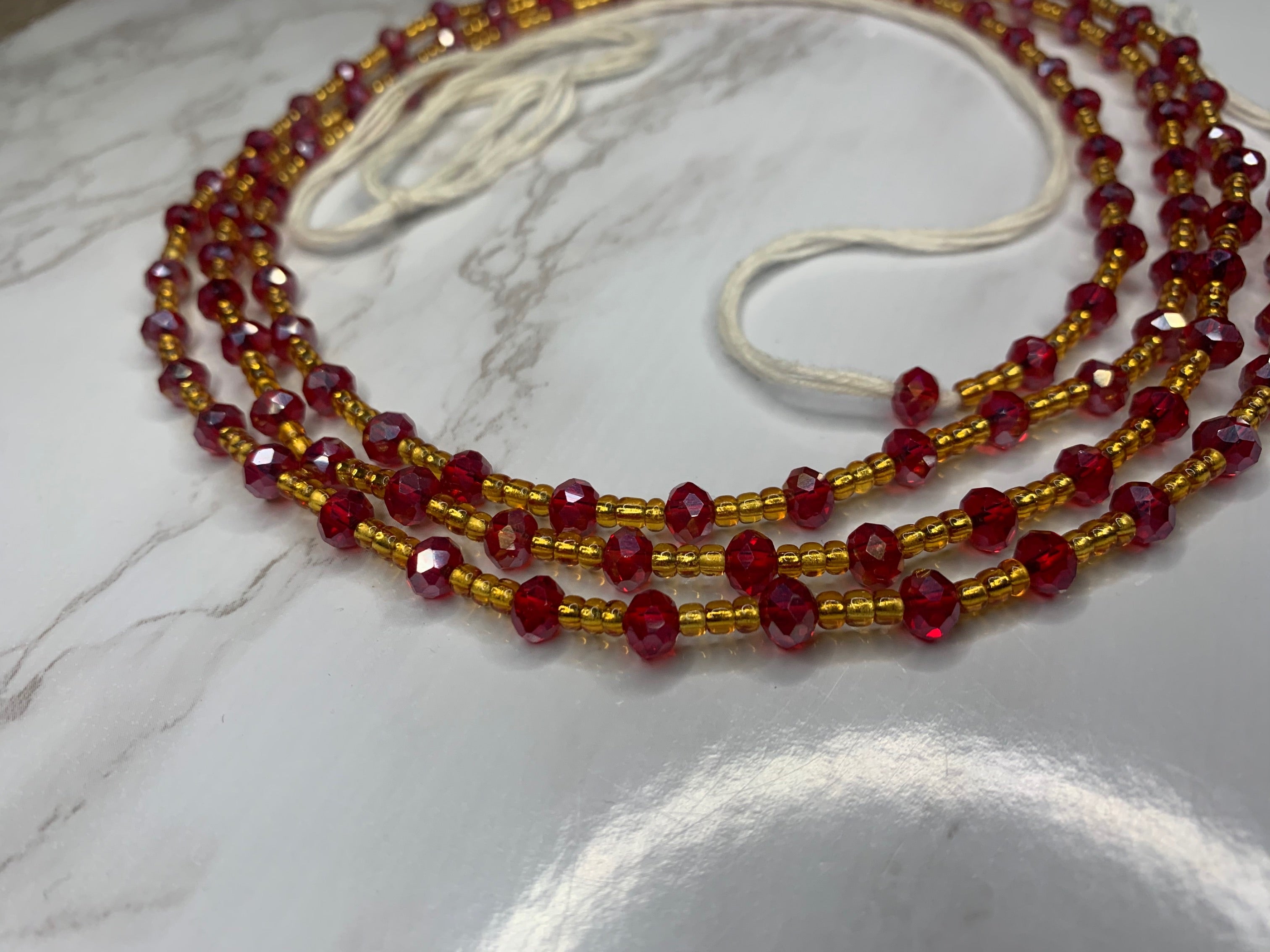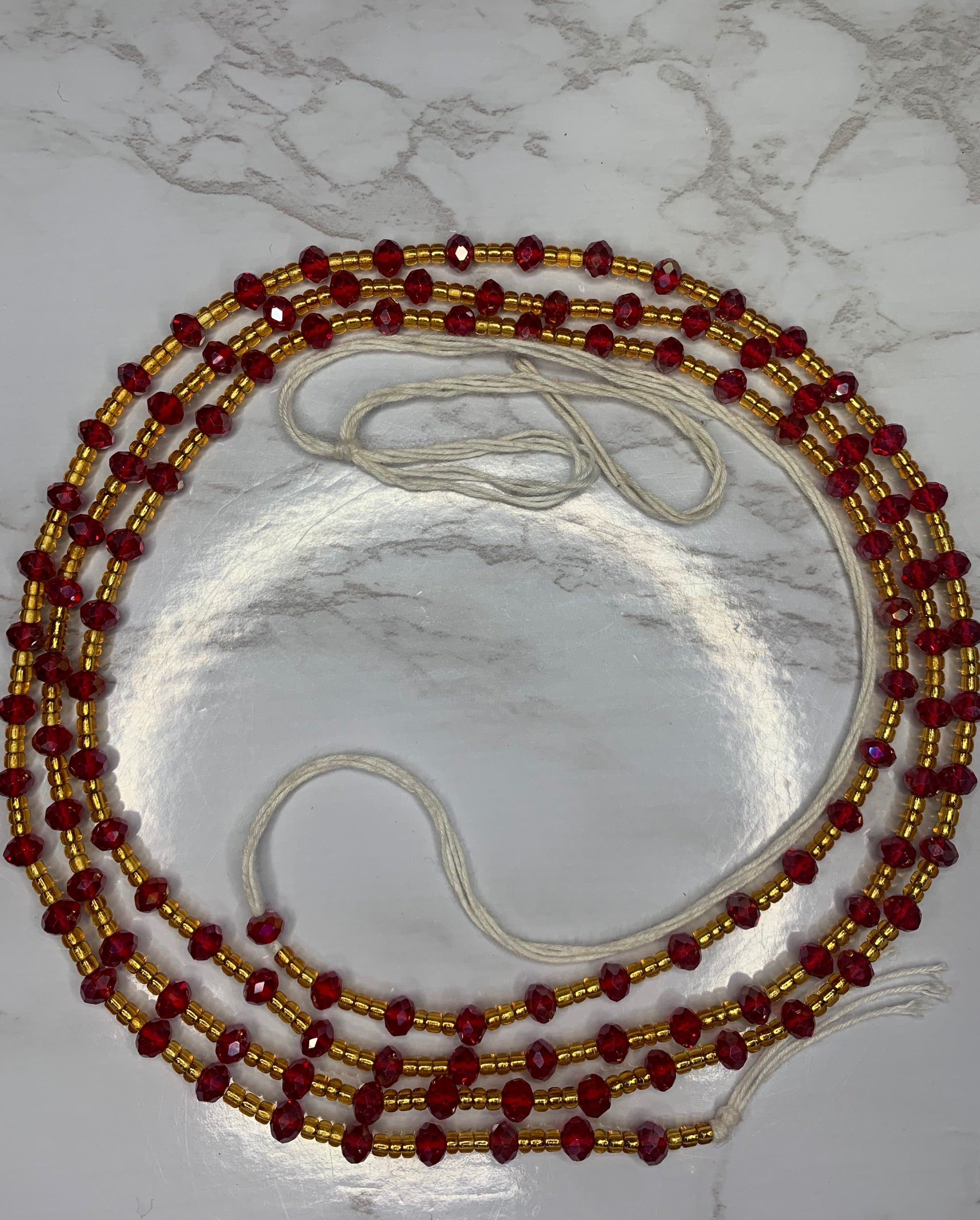 All waistbeads are 50 inches. To adjust them to your size and put them on follow the tutorial on the (How to) card received in package. You can also find the pinned tutorial on our Tiktok page.