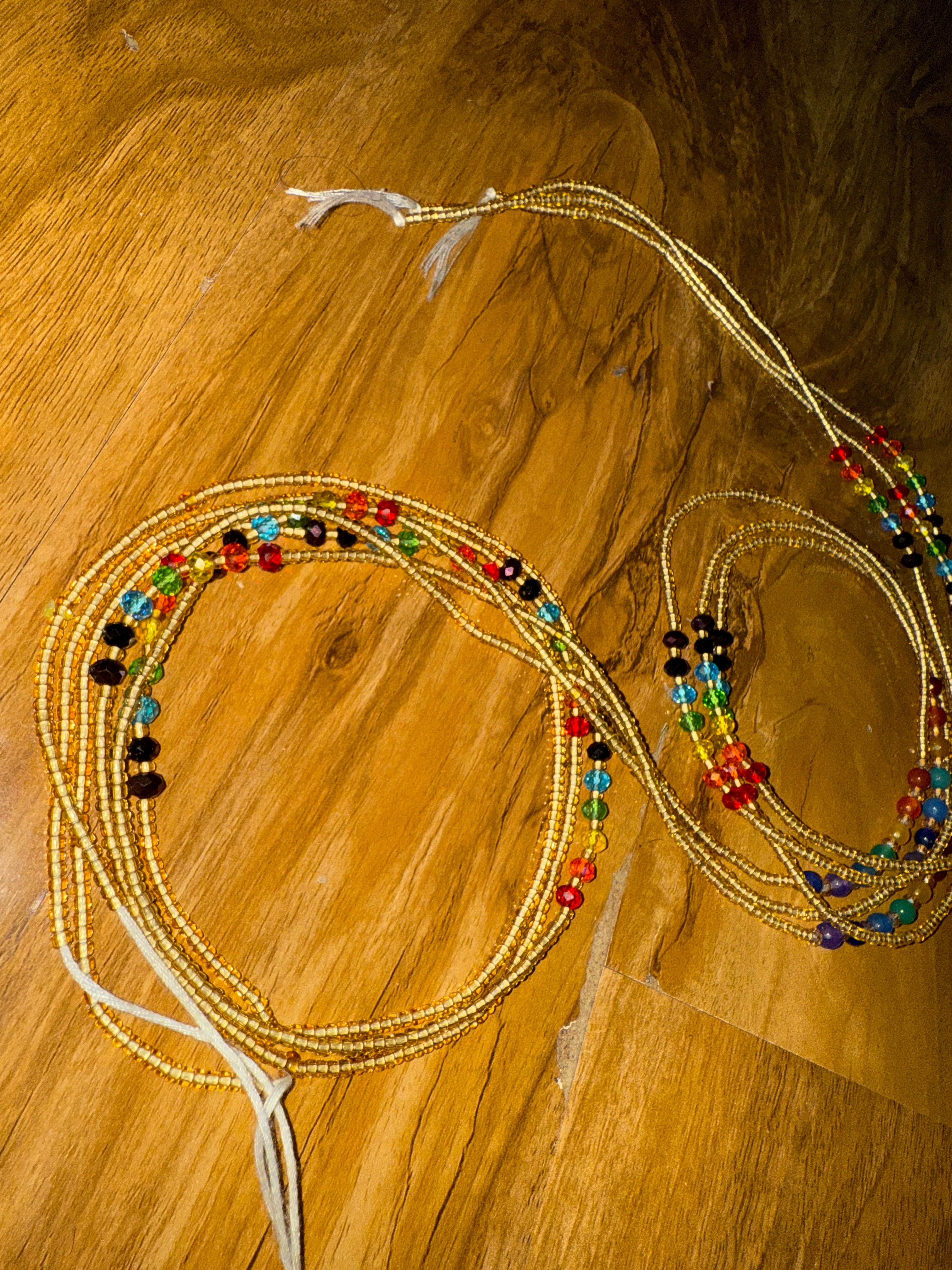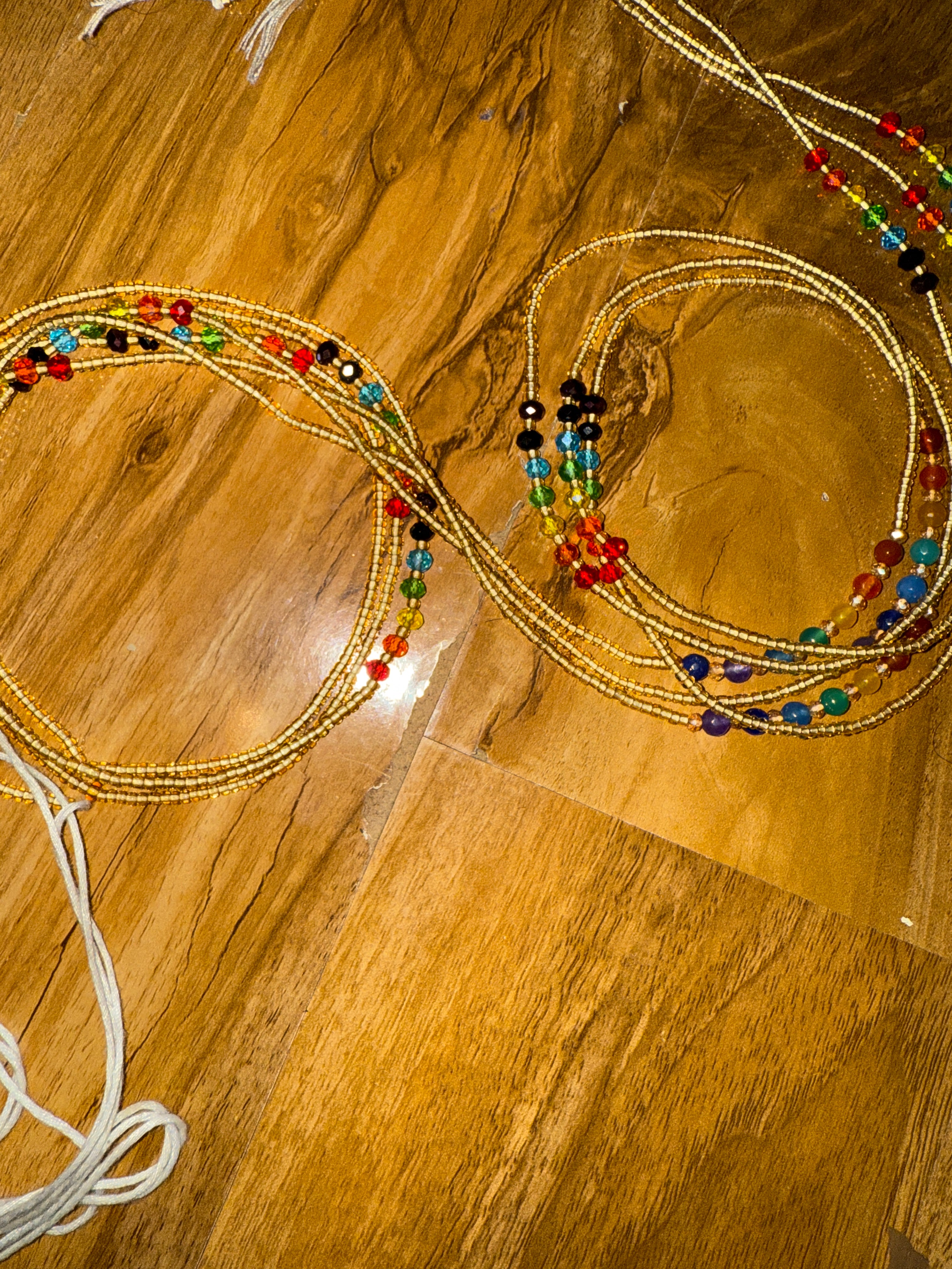 All waistbeads are 50 inches and 60 inches. To adjust them to your size and put them on follow the tutorial on the (How to) card received in package. You can also find the pinned tutorial on our Tiktok page.